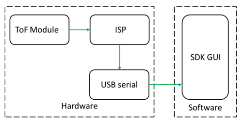 The CS20 is equipped with a ToF image sensor with a resolution of 640*480, which uses ToF technology to obtain three-dimensional information about objects and space, and has excellent performance such as long distance and low power consumption, providing users with convenient and efficient 3D perception capabilities. The product is powered and outputs phase information through the Type C interface, and users can obtain data such as depth and point cloud through the SDK.